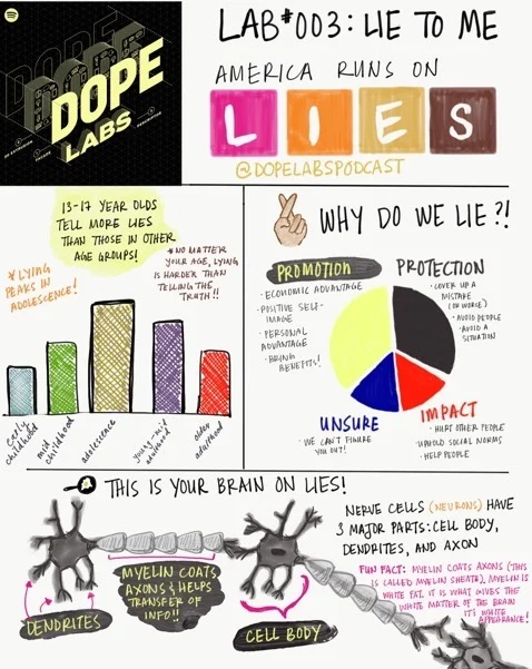 We had a lot of fun recording this episode, but one of the highlights was reading and listening to your stories about lies you’ve told. Remember, you can always leave us voicemails to be included in the next episode at 202 - 567 - 7028. You can also slide in our DMs @dopelabspodcast on Instagram or Twitter.